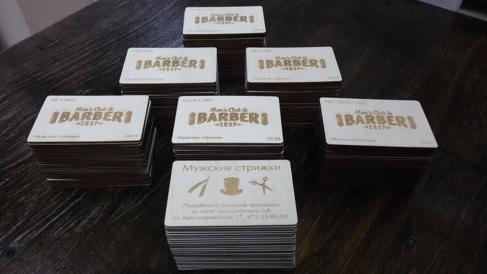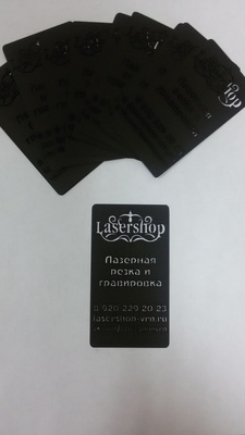 Изображения на пластиковые, бумажные и деревянные визитки наносятся лазерной гравировкой, либо прорезаются лазером буквы и узоры. Визитки могут быть дополнены художественными высечками.